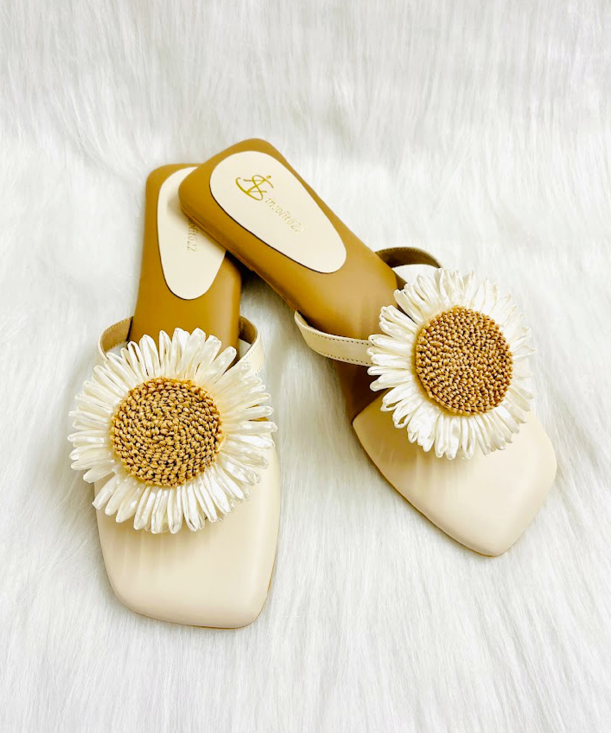 Step into a field of dreams with our Daisy Dreamer Slides. These sweet and charming flat sandals feature a soft, creamy base beautifully accented by a delightful fabric daisy.100% handmade.