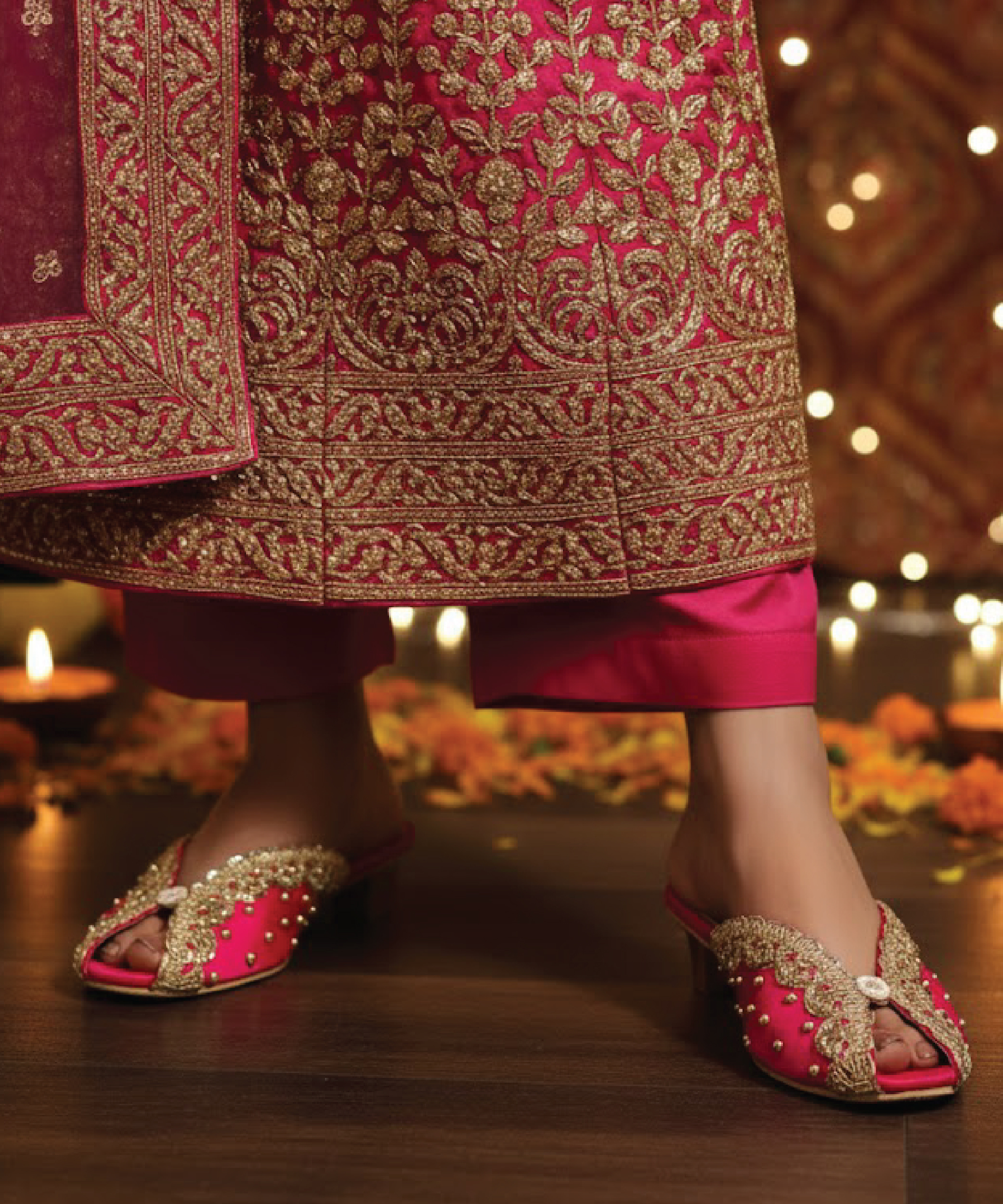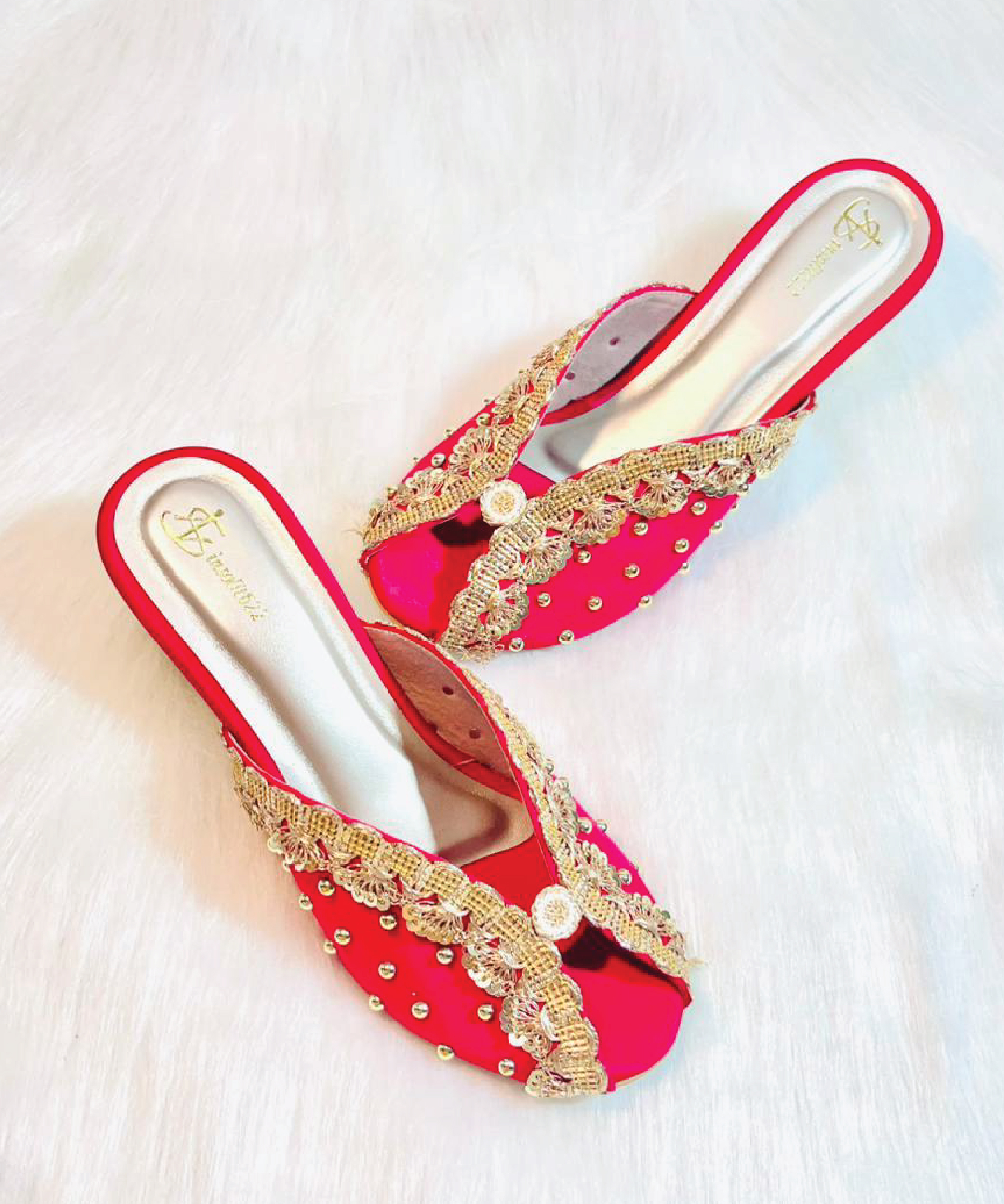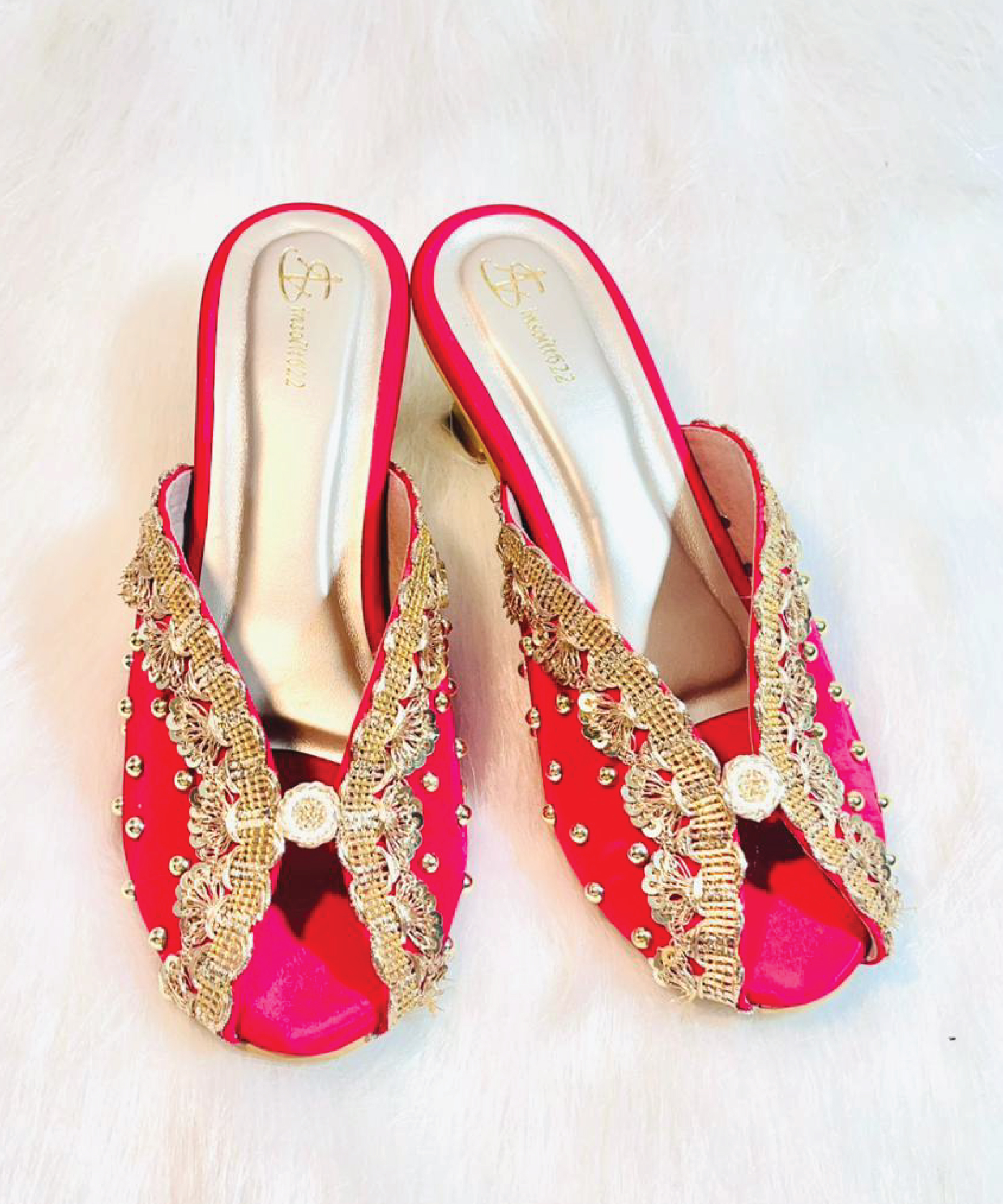 The royal pink embellished mules heel for women is designed for those who love bold elegance and festive glamour. Handcrafted with luxurious detailing, this statement heel brings together rich pink tones, intricate embellishments, and refined craftsmanship to create a standout piece for weddings, festive celebrations, and special occasions.
